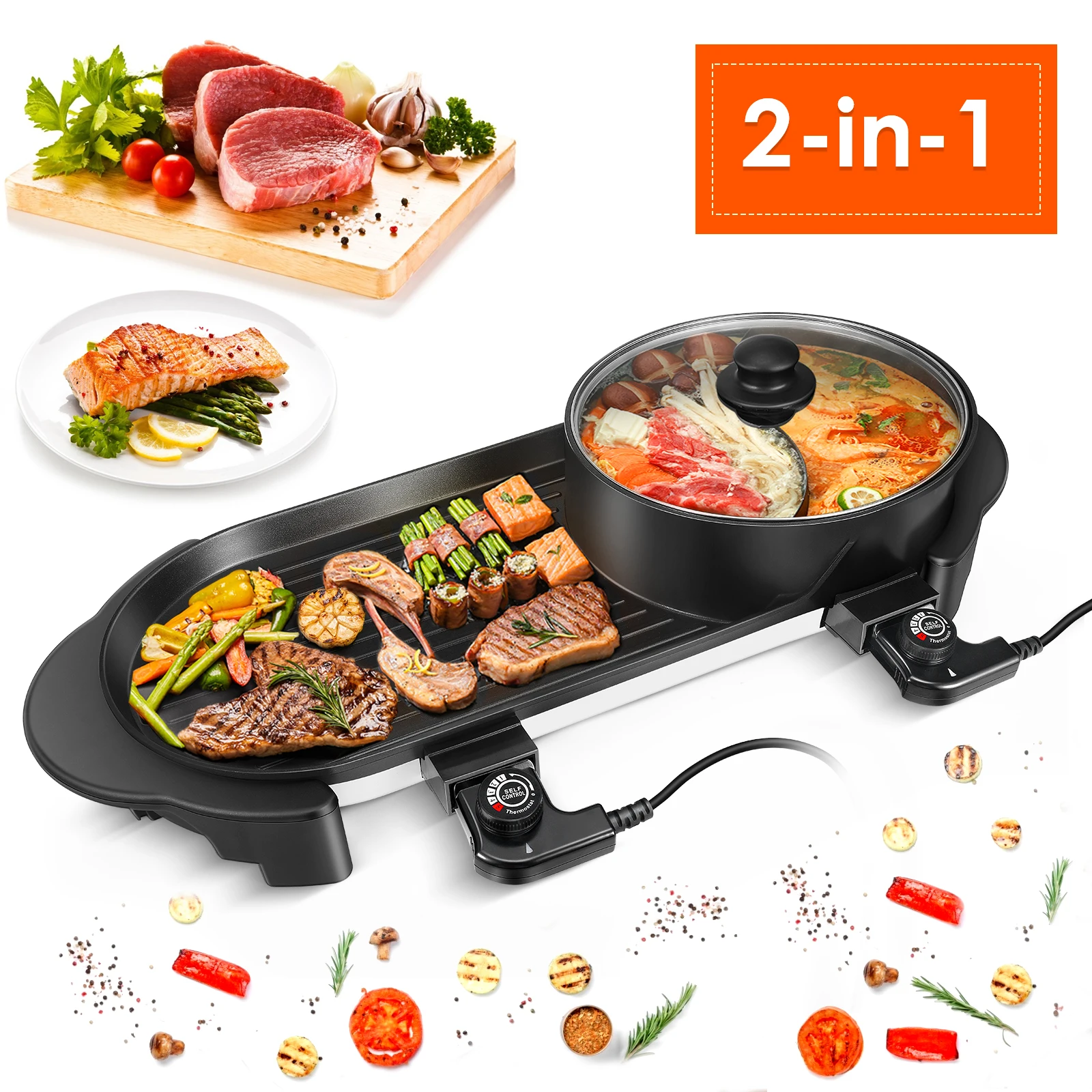 Special Offer Портативный Электрический гриль для барбекю для дома 2 в 1, горячий горшок, тарелка для жарки, большая емкость, бытовая многофункциональная а... Discount (50%OFF) Today!