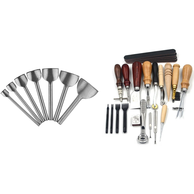 Купить Набор инструментов для перфорации кожи, 18 шт., инструмент «сделай сам» с дугообразным резцом, дырокол для ремня, 7 размеров (10 мм-40 мм) Искусство, ремесла и шитье